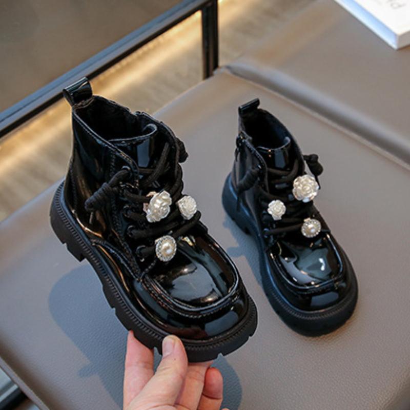 Модные ботиночки для девочек, бежевые, с подкладкой, с цветами, на плоской подошве, детские хлопковые туфли для девочек, осень-зима, черные, нескользящие, короткие детские ботиночки 34 чёрный