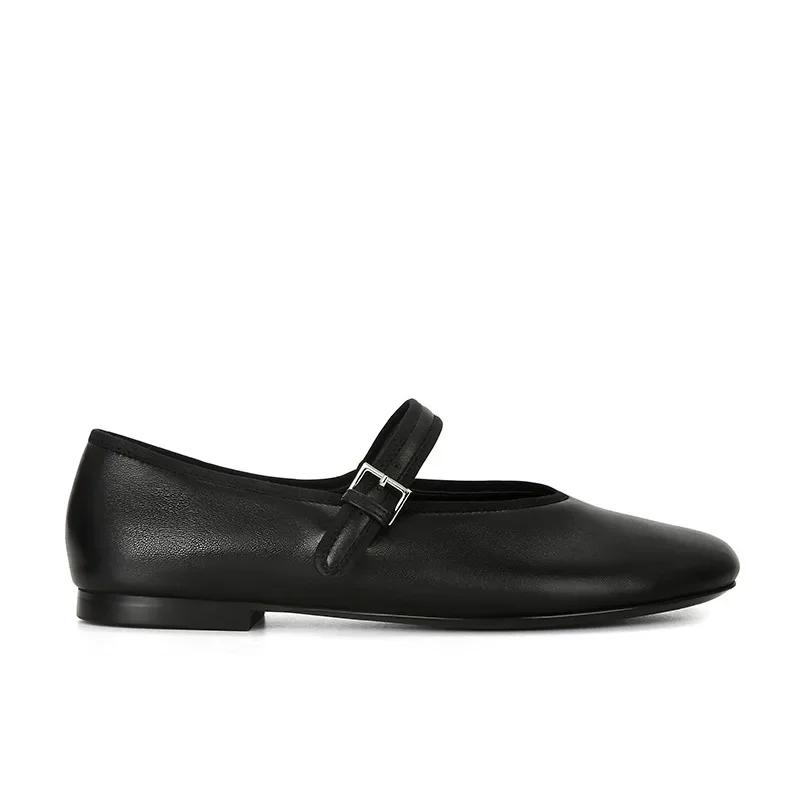 Модные весенне-осенние туфли из мягкой овчины, женские новые туфли-лодочки на плоской подошве с пряжками и ремешками, туфли Мэри Джейн, женская обувь для бабушек 34 чёрный