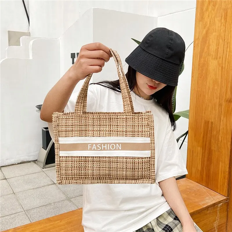 Модные дизайнерские сумки на плечо, повседневные женские сумки-тоуты в стиле ретро, сумка для покупок, женская вязаная однотонная большая с...