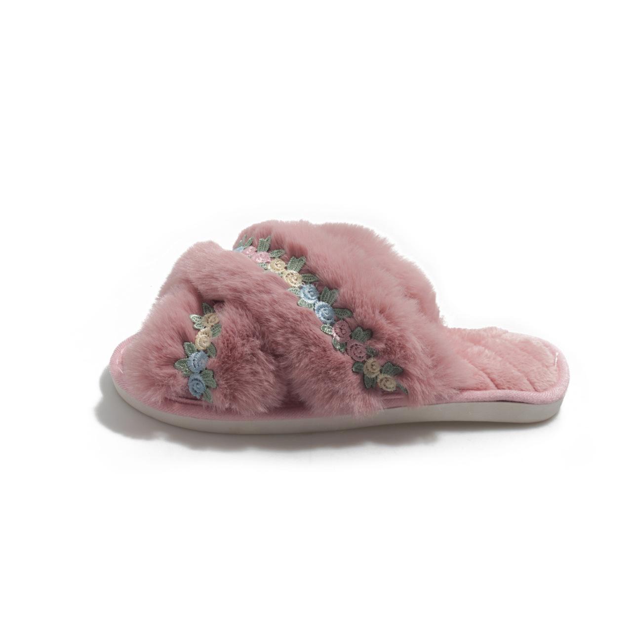 Модные домашние тапочки с цветочным узором и перекрестными ремешками для женщин, осенние и зимние теплые плюшевые тапочки, хлопковая обувь для дома и спальни 42-43 розовый