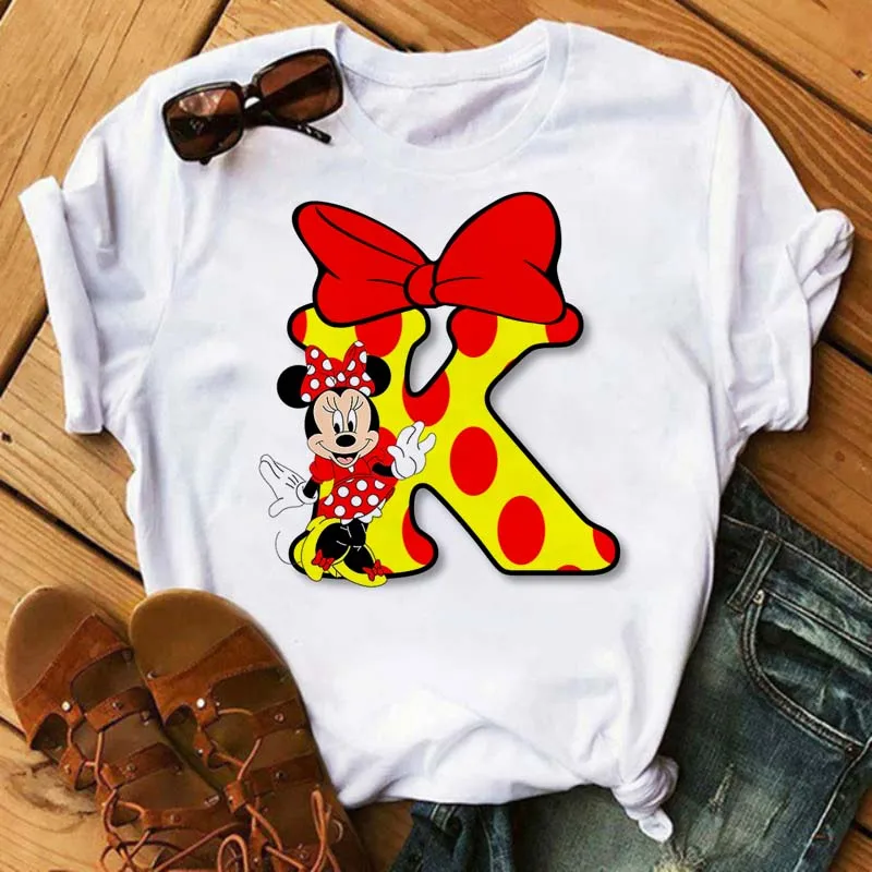 Модные женские блузки 2024, летняя футболка, Милая футболка с Микки Маусом и Минни-надписью ABCDEFG, Детская футболка с мультяшным Диснеем Y2k, одежда, футболка