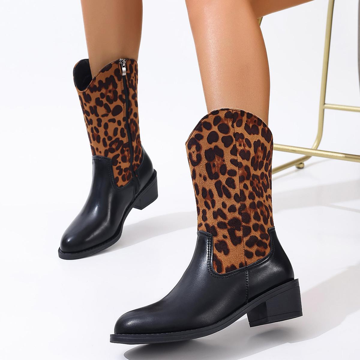 Модные женские ботинки челси с леопардовым принтом, на среднем каблуке, с фирменным дизайном AJGS, теплые зимние ботинки на толстой подошве для женщин 42