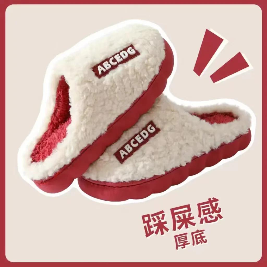 Модные женские зимние теплые домашние тапочки, утолщенные комнатные тапочки для мальчиков и девочек, плюшевые шлепанцы на высоком каблуке, меховые хлопковые туфли, женские тапочки для пар 44-45 красный