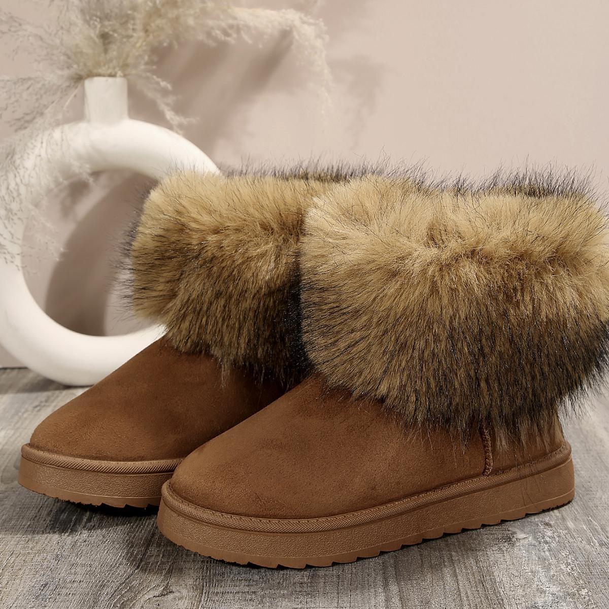 Модные женские меховые сапоги на платформе, зимние плюшевые теплые короткие сапоги с круглым носком, легкие нескользящие черные женские зимние сапоги, размер плюс 43 43 коричневый