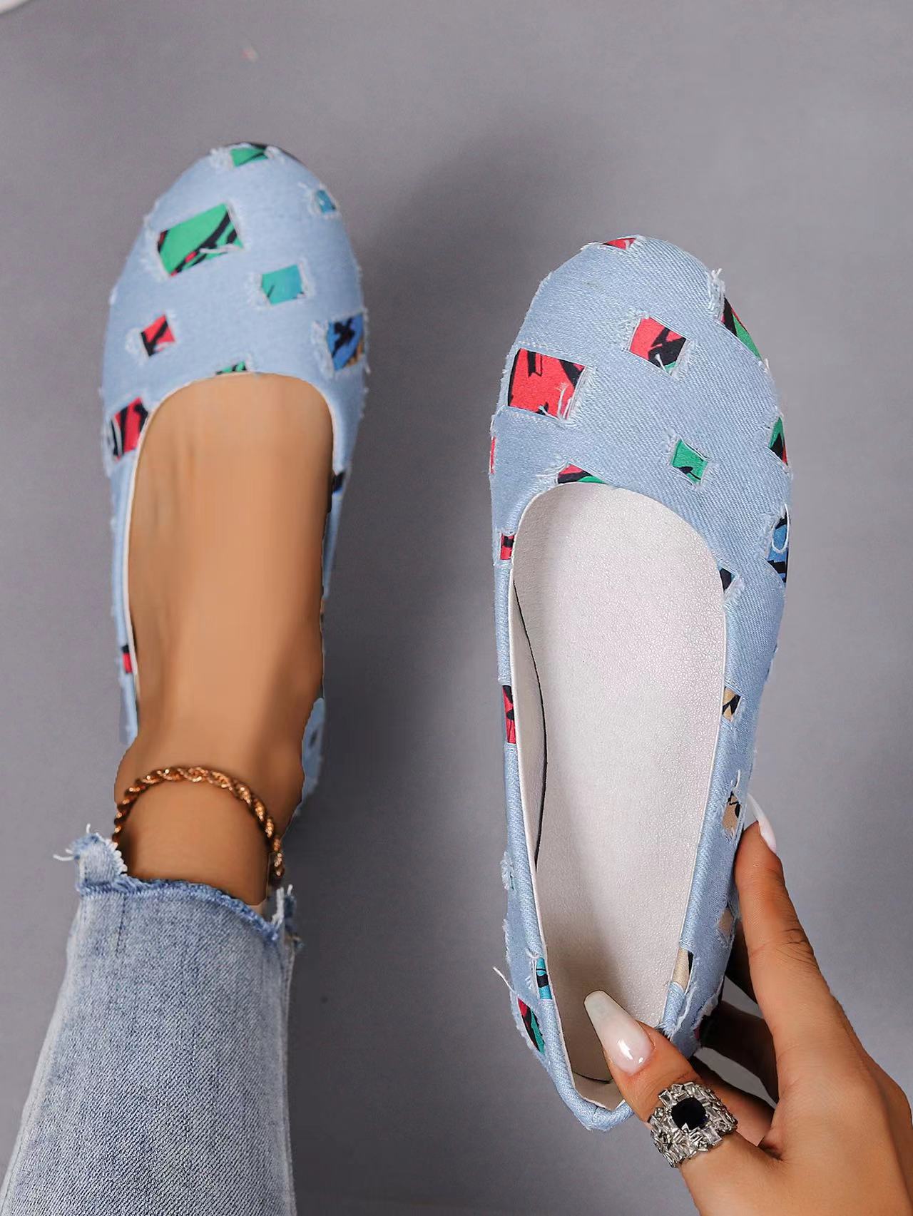 Модные женские мокасины 2024 года, новые разноцветные лоскутные джинсовые дышащие туфли, балетки, мокасины, повседневные туфли с круглым носком без застежек 40 синий
