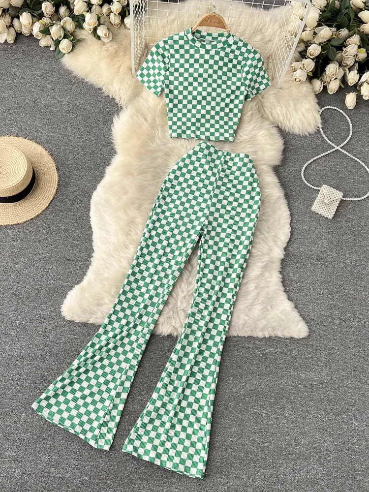 Модные женские облегающие брюки-клеш с коротким рукавом и высокой талией, костюм из двух предметов для уменьшения возраста и похудения, D0659