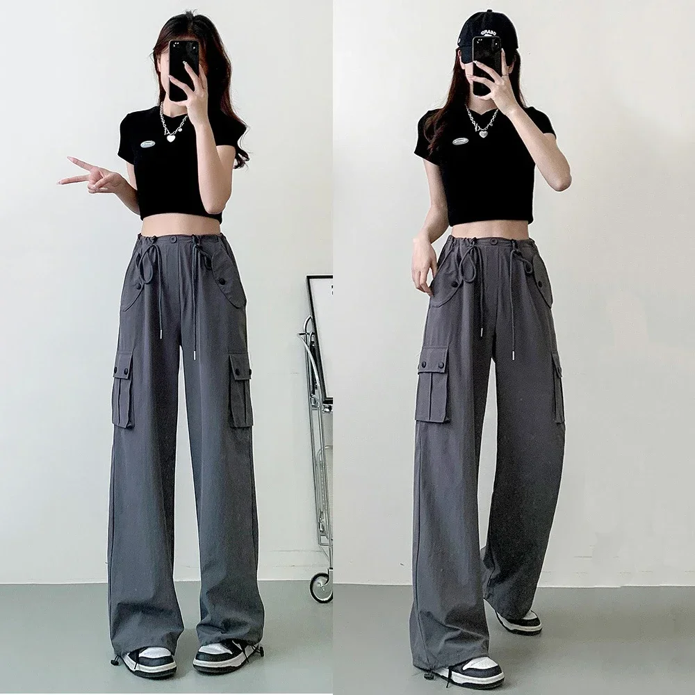 Модные женские парашютные Брюки с карманами на завязках, в стиле хип-хоп