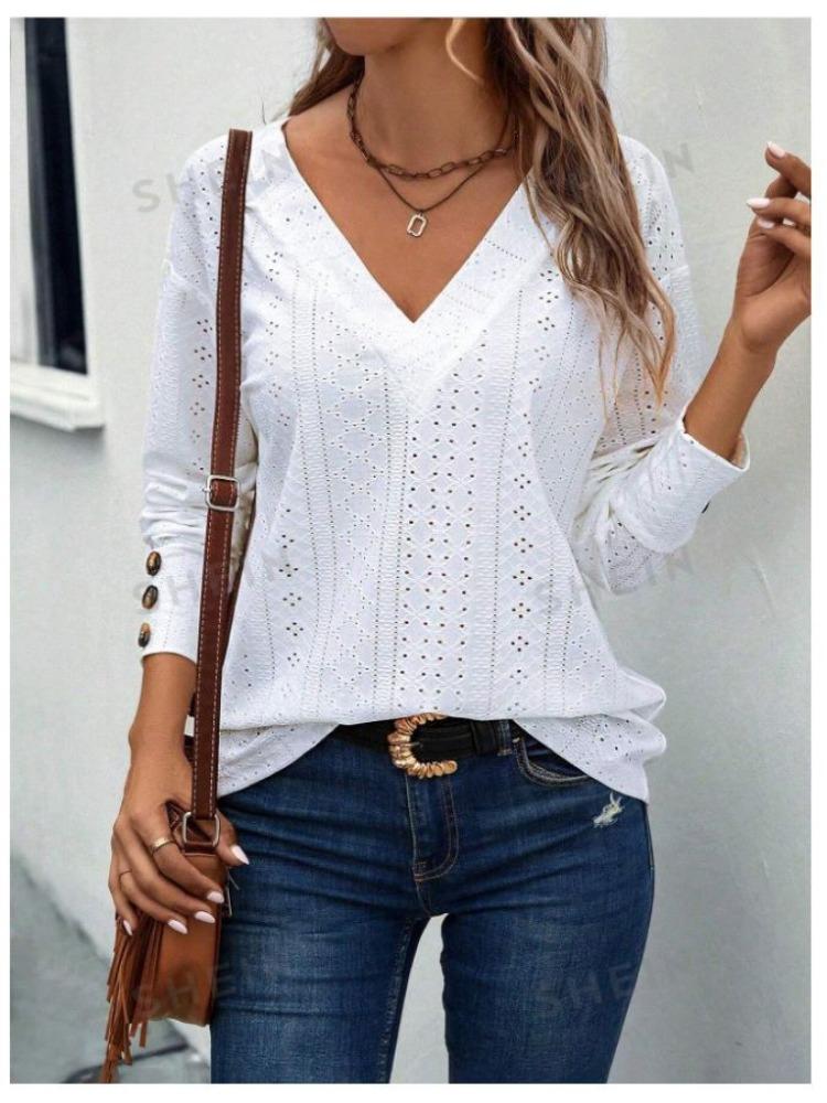 Модные женские повседневные топы с V-образным вырезом и приспущенными плечами, футболка с длинными рукавами, удобная и универсальная футболка для женщин, элегантная женская одежда XXL белый