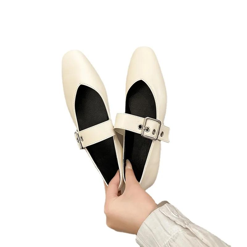 Модные женские сандалии балетки женские остроносые заклепки одинарные туфли неглубокие женские сандалии на толстой подошве Мэри Джейн Zapatos De Mujer 35 бежевый