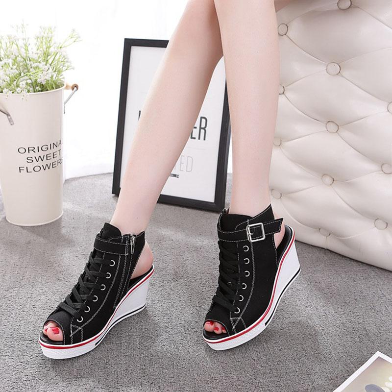 Модные женские сандалии 2024 года, женские босоножки на танкетке и платформе, удобные женские сандалии с открытым носком, повседневная летняя спортивная обувь Sandalias 35 чёрный