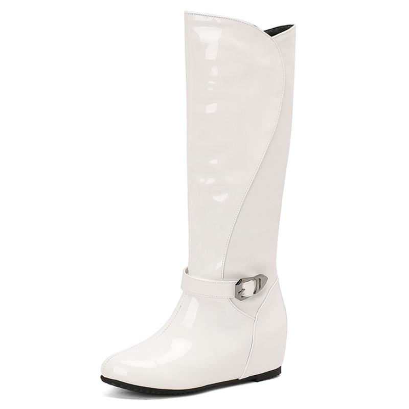 Модные женские сапоги до колена, зимняя обувь, черные, белые, розовые, на танкетке, длинные сапоги, женская обувь для вечеринок, увеличивающая рост, большой размер 45 34