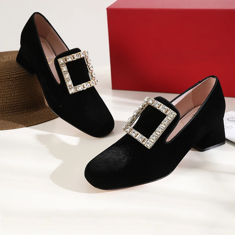 Модные женские сапоги на высоком каблуке, женские туфли-лодочки с украшением в виде кристаллов, с квадратным носком, с пряжкой; Женские вече...