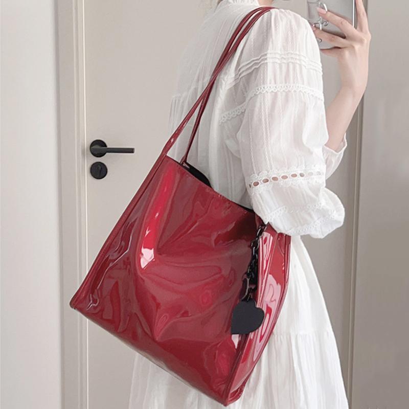 Модные женские сумки на ремне из лакированной кожи, винтажные женские повседневные сумки-тоут, большая вместительная женская сумка для покупок 31x10x29cm красный