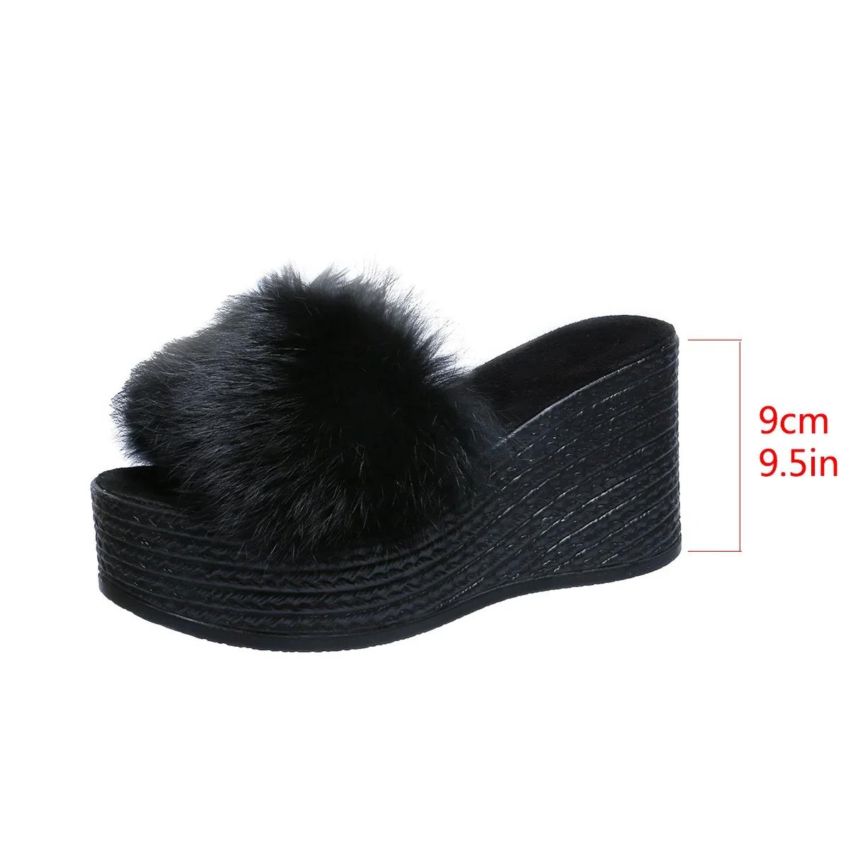 Модные женские тапочки на толстой платформе с мехом, летние толстые меховые тапочки, женские плюшевые дизайнерские туфли, шлепанцы, женские сандалии, шлепанцы 36 чёрный