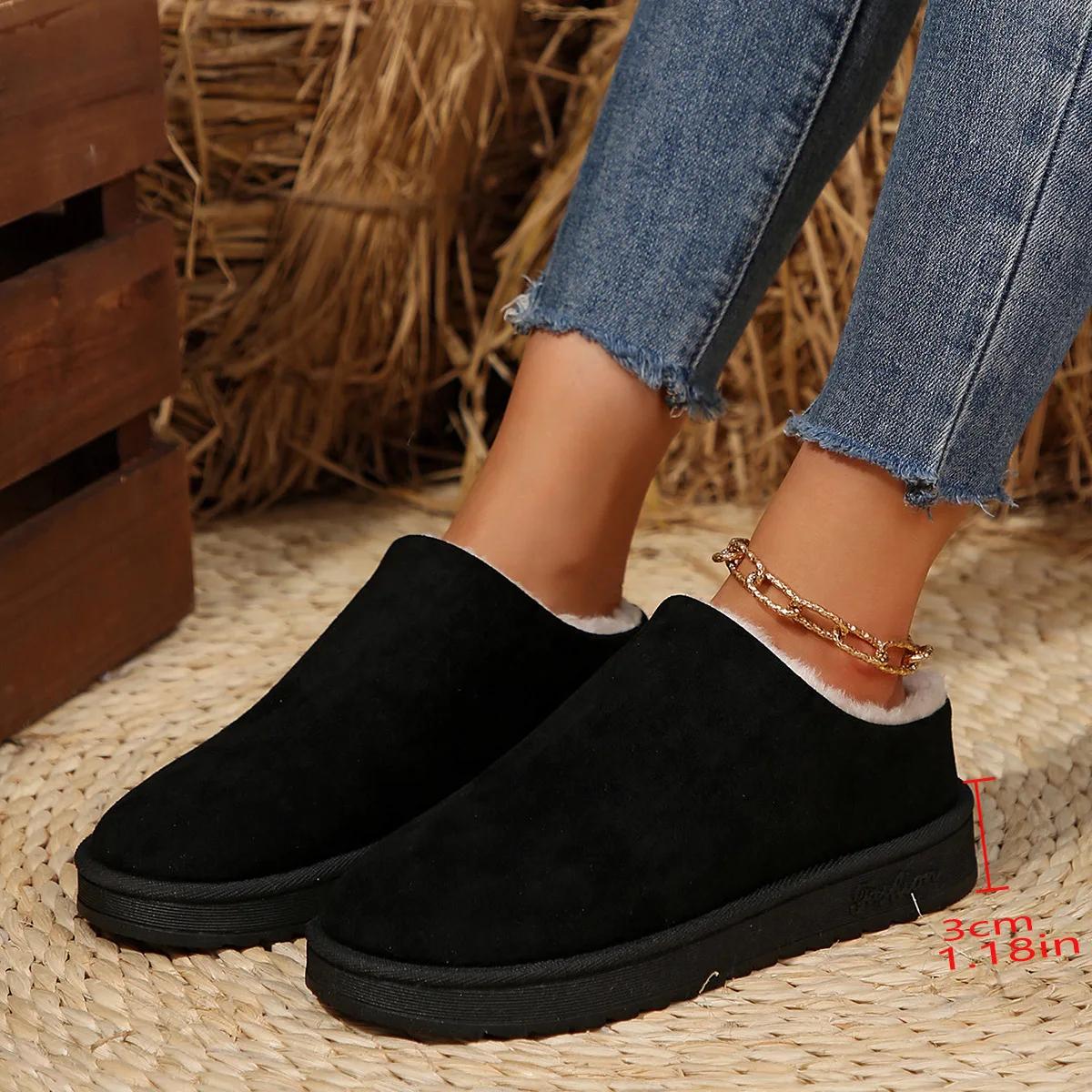 Модные женские теплые замшевые зимние сапоги осень-зима женские туфли на платформе с закрытым носком полутапочки женские хлопковые туфли 43 чёрный