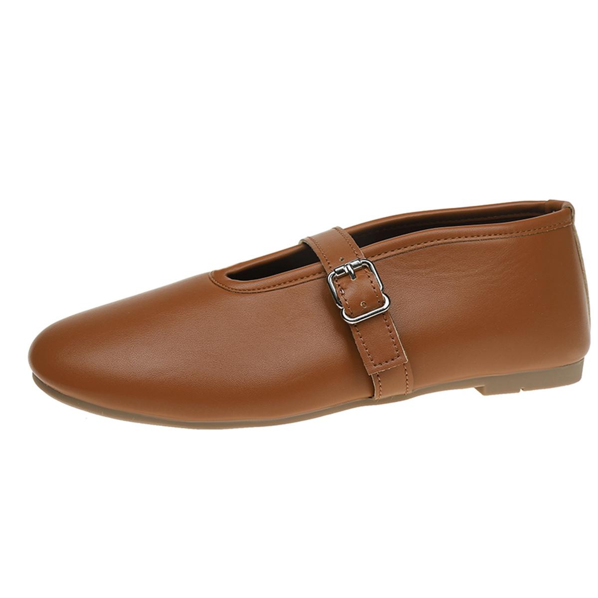Модные женские туфли Мэри Джейн, осенние туфли из натуральной кожи, винтажные женские туфли, модные балетки с круглым носком, повседневные туфли на плоской подошве, женские, размер плюс 43 43 шоколадный