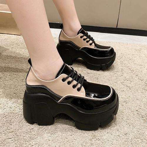 Модные женские туфли на танкетке из лакированной кожи на шнуровке высотой 7 см, летние мокасины на высоком каблуке, дизайнерские разноцветные ботинки на шнуровке 39 хаки