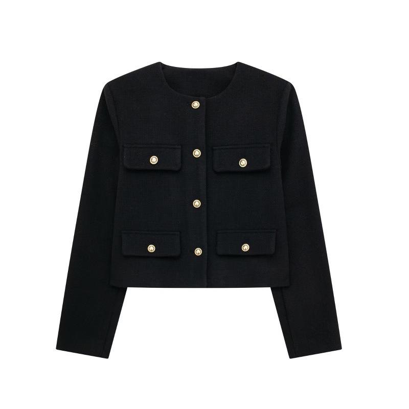 Модные женские укороченные куртки-бомберы, женский пиджак с золотыми пуговицами, весенняя женская шикарная уличная одежда, верхняя одежда S чёрный