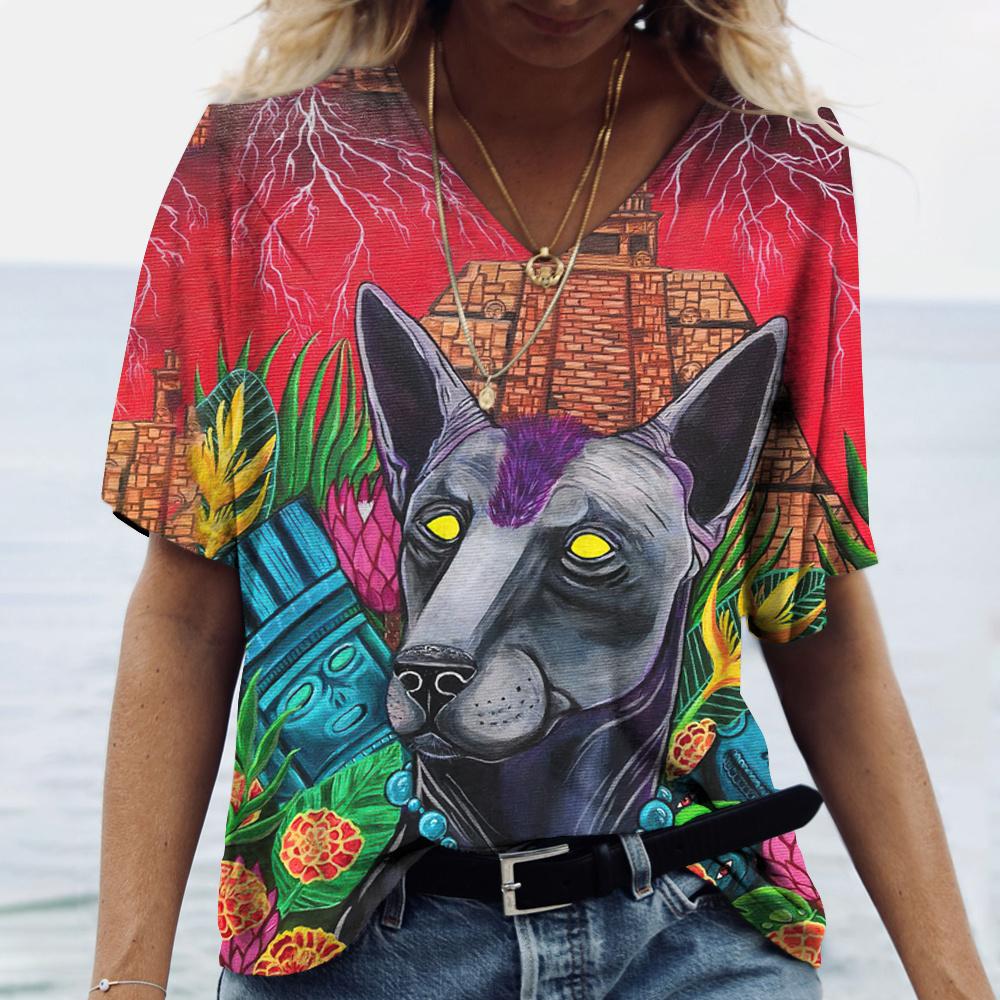 Модные женские футболки с 3d абстрактной графикой, футболка с принтом собаки, забавная одежда, летние топы с v-образным вырезом и короткими рукавами, пуловер большого размера 5XL