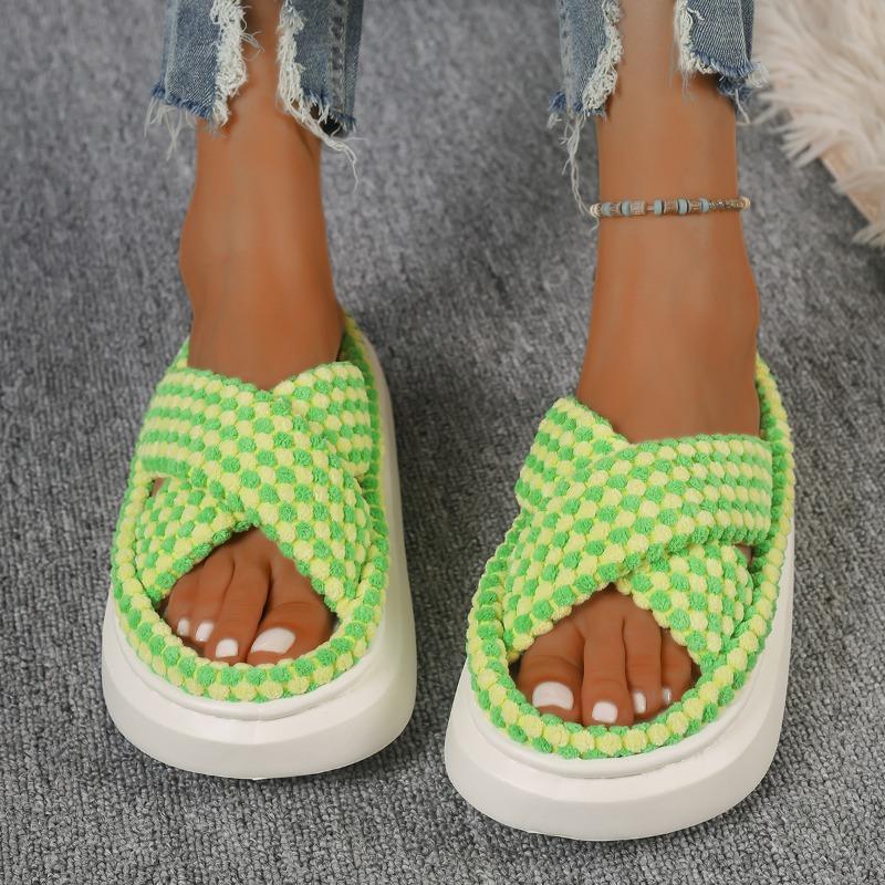 Модные женские хлопковые тапочки, новые зимние мягкие повседневные домашние тапочки с открытым носком, перекрестные тапочки, нескользящие домашние тапочки на платформе 42-43 зелёный