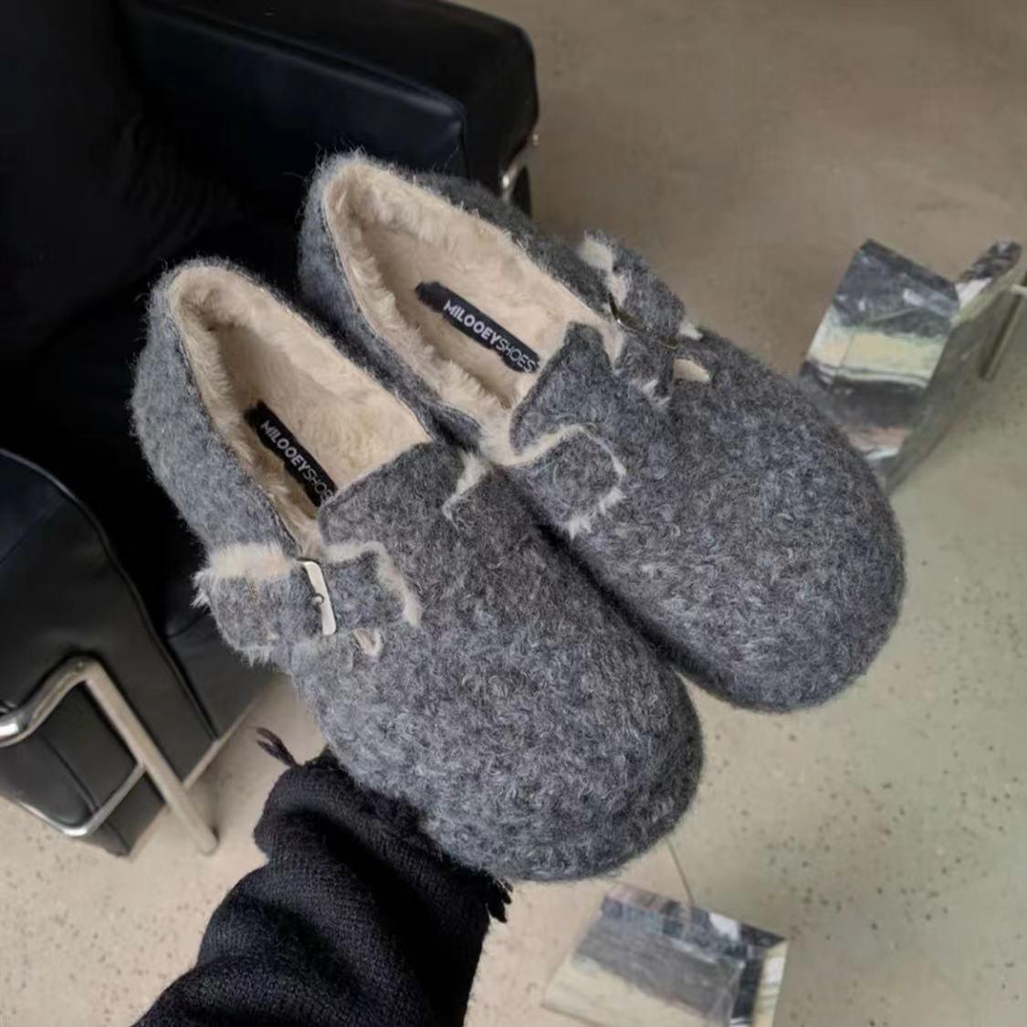 Модные замшевые туфли на плоской подошве, женские туфли, зимние новые короткие плюшевые теплые туфли 2025 года, новые тенденции моды, зимние ботильоны, повседневные спортивные кроссовки 39
