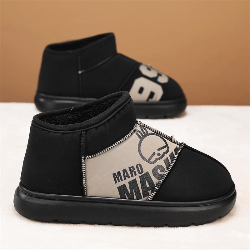 Модные зимние ботинки для мужчин, толстая подошва, унисекс, мужская обувь, мягкая и удобная, нескользящая, износостойкая, с бархатной цветной печатью 44 чёрный