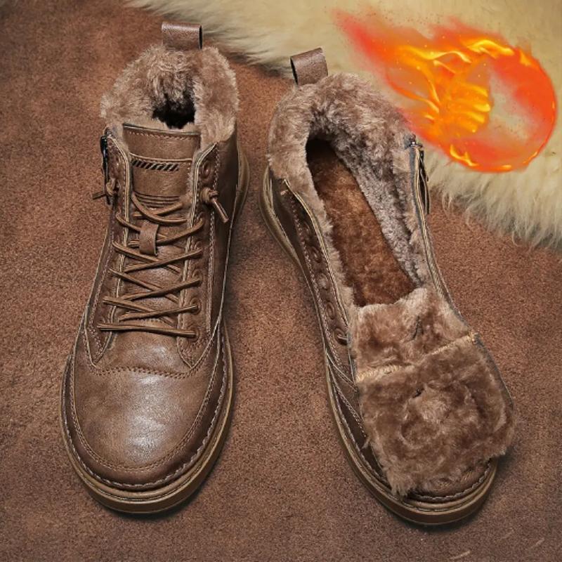 Модные зимние ботинки, мужская зимняя обувь с высоким берцем, бархатная теплая толстая водонепроницаемая хлопковая обувь 44 коричневый