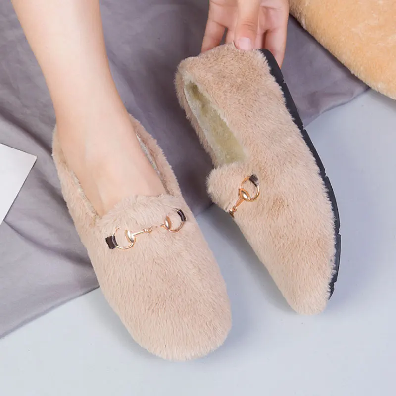 Модные зимние женские удобные лоферы на плоской подошве, женские плюшевые меховые лоферы, милая обувь в Корейском стиле, балерины, женские м...