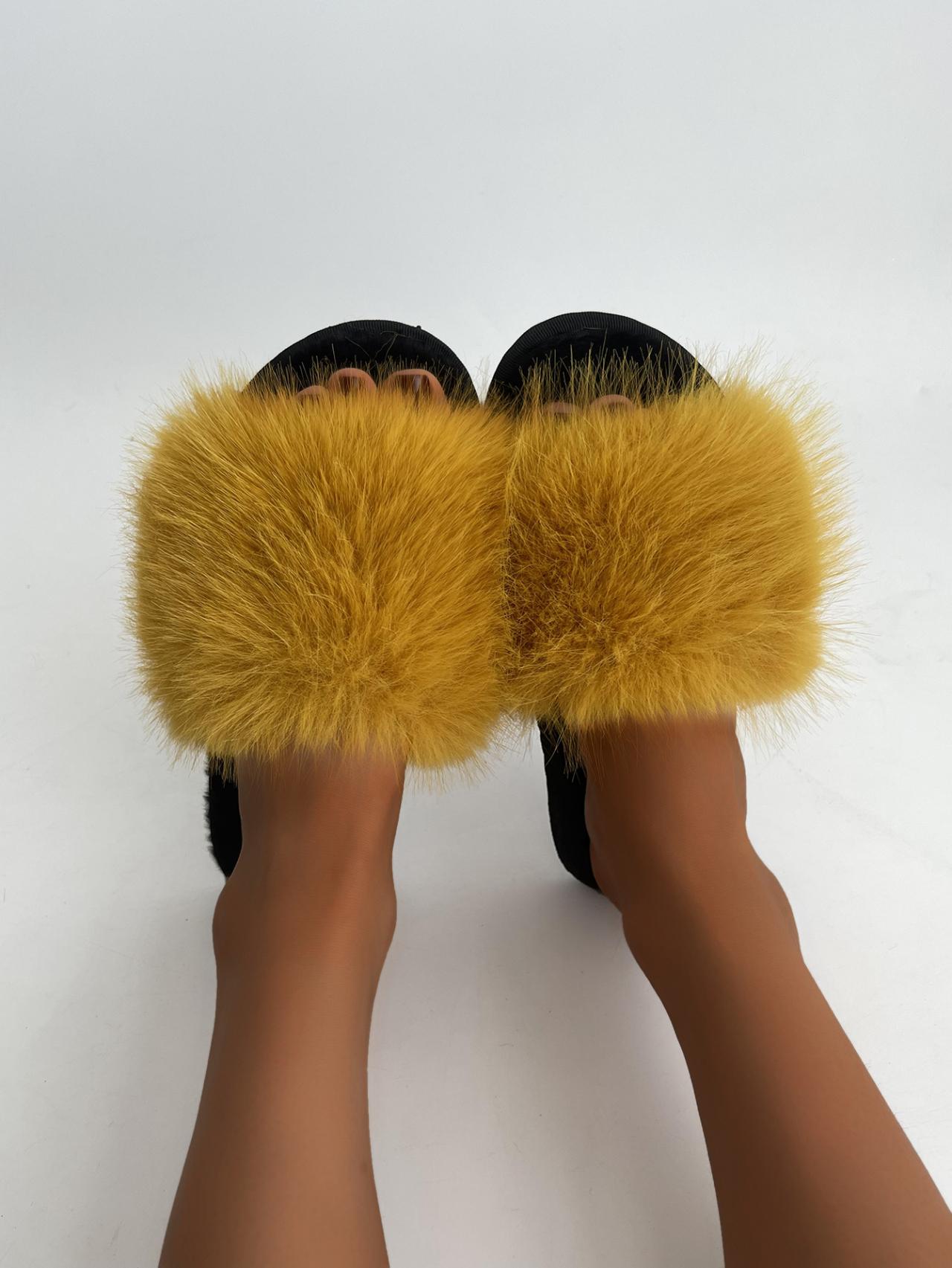 Модные зимние меховые тапочки для дома женские домашние пушистые мягкие плюшевые плоские хлопковые тапочки домашняя обувь 38-39 жёлтый
