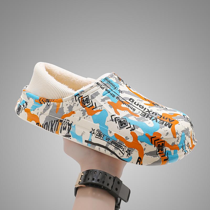Модные зимние мужские тапочки из хлопка с рисунком для дома и улицы, толстые, плоские, на меху, нескользящие, плюшевые, водонепроницаемые, без застежек, для улицы 44 оранжевый