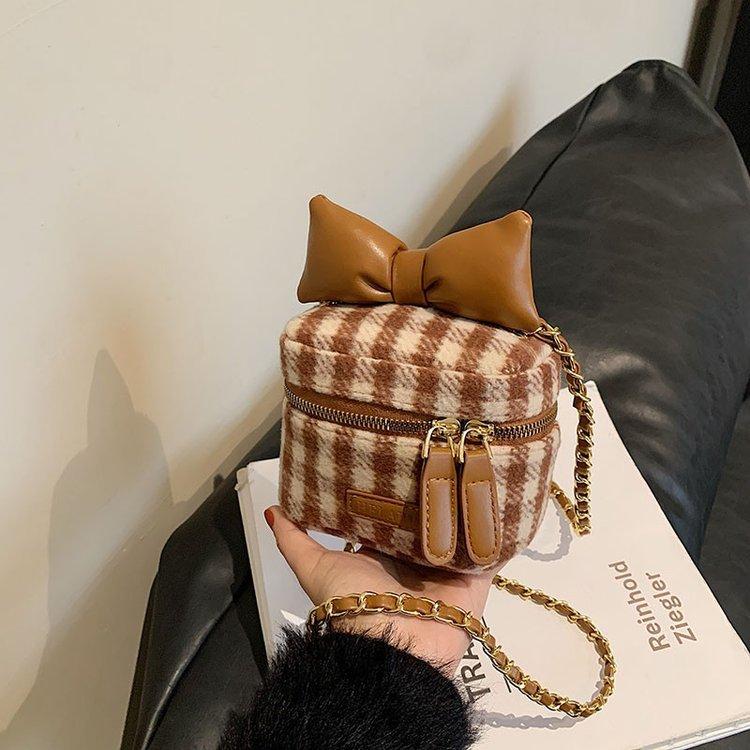 Модные клетчатые мини-сумки через плечо для женщин, корейская летняя сумка-ведро с бантом и цепочкой, женская простая универсальная помада-кошелек для карт Mini(Max Length<20cm)