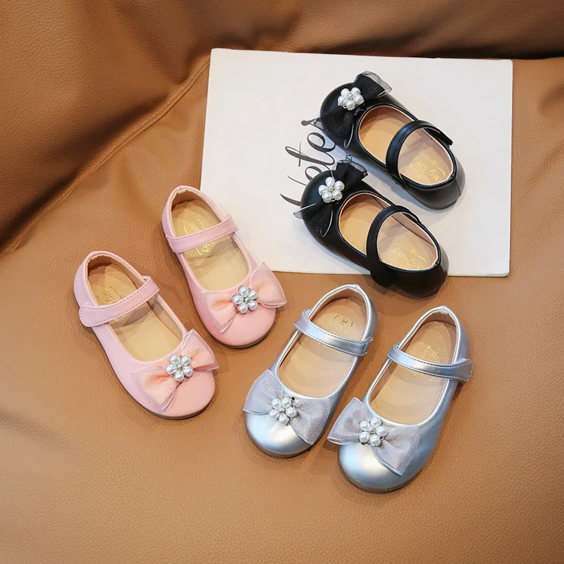 Модные кожаные туфли для девочек, обувь принцессы с бантом, детская обувь с мягкой подошвой, универсальные Туфли Мэри Джейн, детские туфли из термопластичной резины