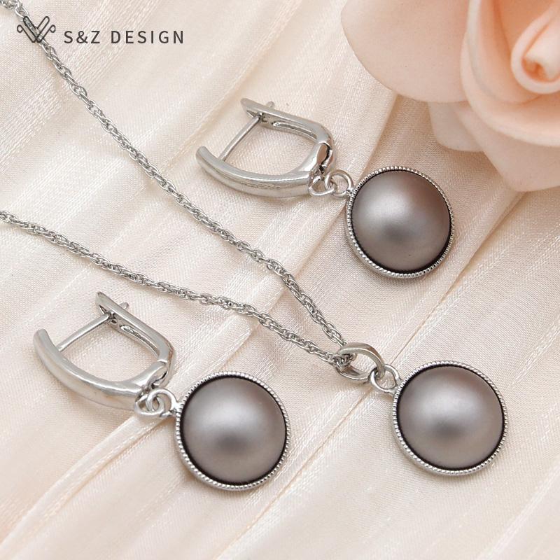 Модные круглые серьги с искусственным жемчугом, комплекты ювелирных изделий для женщин, ожерелье с подвеской цвета розового золота
