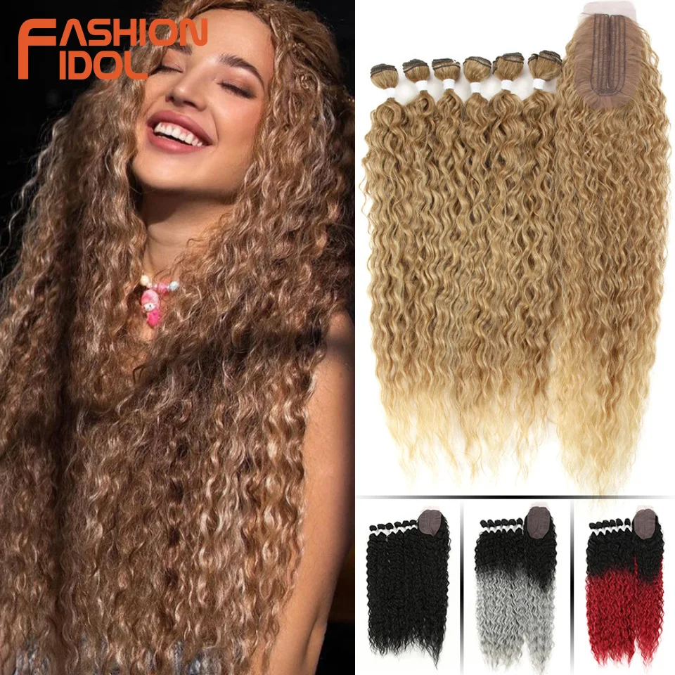 Модные кудрявые накладпряди волосы IDOL афро Блонд 30 дюймов мягкие длинные кудрявые волосы синтетические волнистые волосы