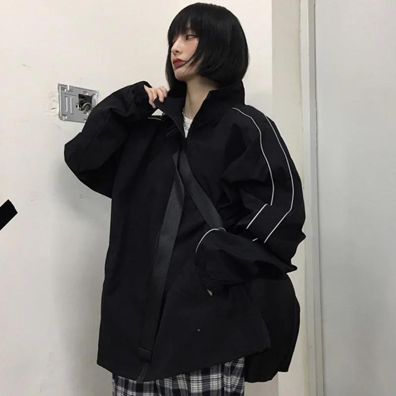Модные куртки женские весенние уличные карманы свободные верхняя одежда BF женские светоотражающие полосатые повседневные студенческие XXL