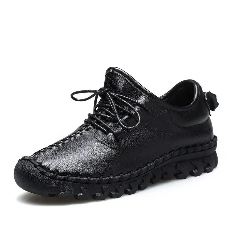 Модные лоферы Женская обувь на плоской подошве Ручная работа Швы Натуральная коровья кожа Слипоны Лоферы Осень Женский комфорт Мягкая резиновая подошва Повседневная обувь 42 чёрный