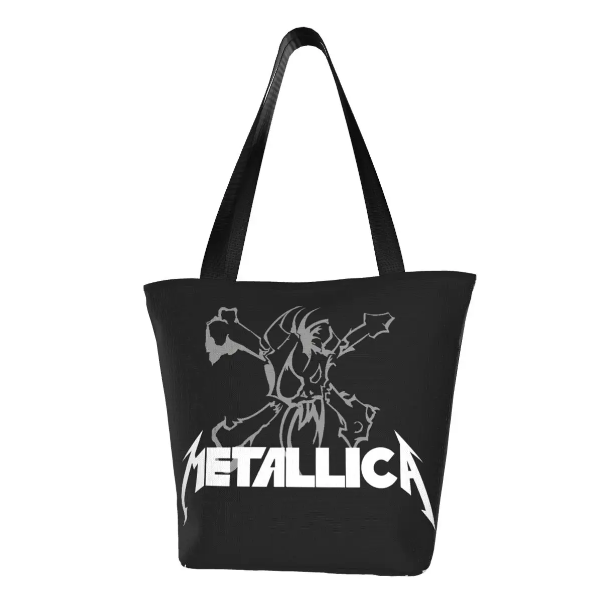Модные металлические сумки-тоуты для покупок с логотипом черепа, многоразовые холщовые сумки-шопперы для покупок из тяжелого металла и муз...
