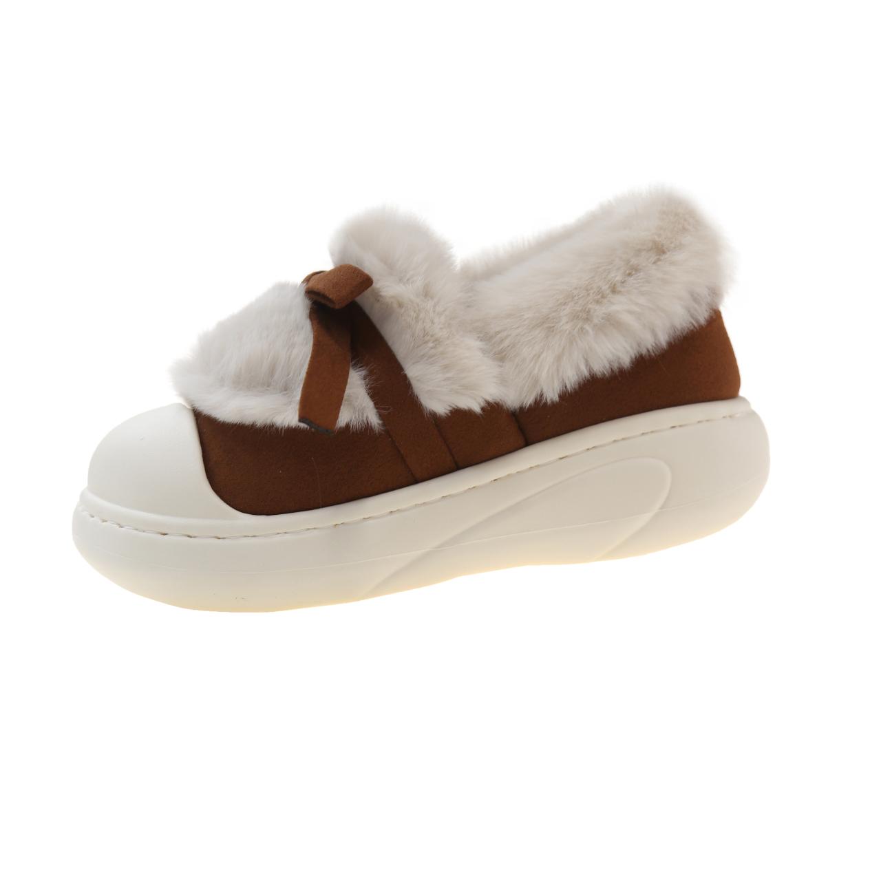 Модные милые плюшевые тапочки с большим бантом 2024 года, новые зимние женские забавные элегантные шерстяные хлопковые тапочки, повседневная теплая домашняя обувь 40-41 хаки