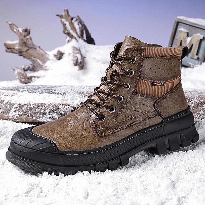 Модные мужские ботинки 2024 года, зимние плюшевые теплые мужские туфли на шнуровке из кожи, нескользящие, с мехом, высокие кроссовки, мужские теннисные туфли, мужские зимние ботинки 10