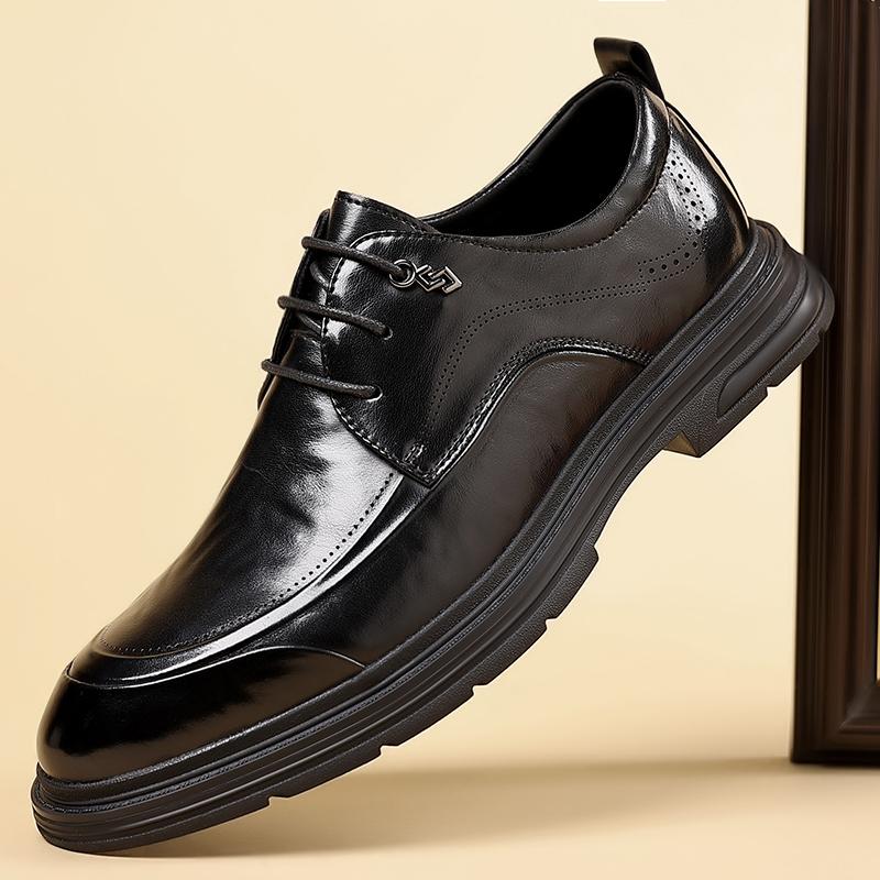 Модные мужские деловые британские повседневные кожаные туфли бренда классические коричневые/черные рабочие туфли корейской версии на шнуровке маленькие кожаные туфли 44 чёрный