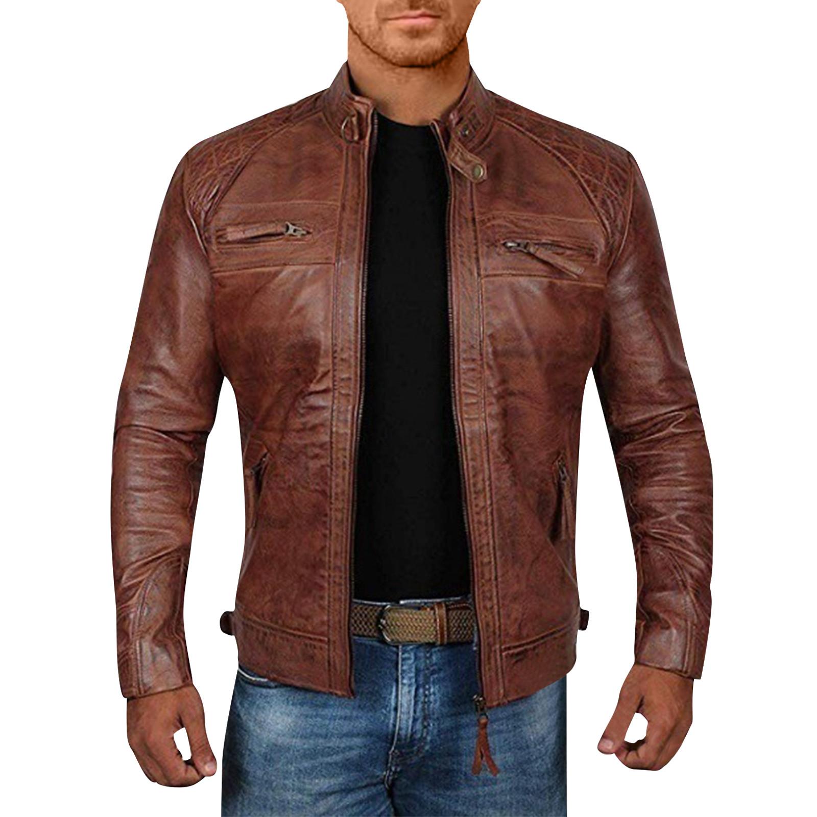 Модные мужские осенне-зимние теплые повседневные кожаные куртки с длинным рукавом на молнии, пальто, топ XL коричневый