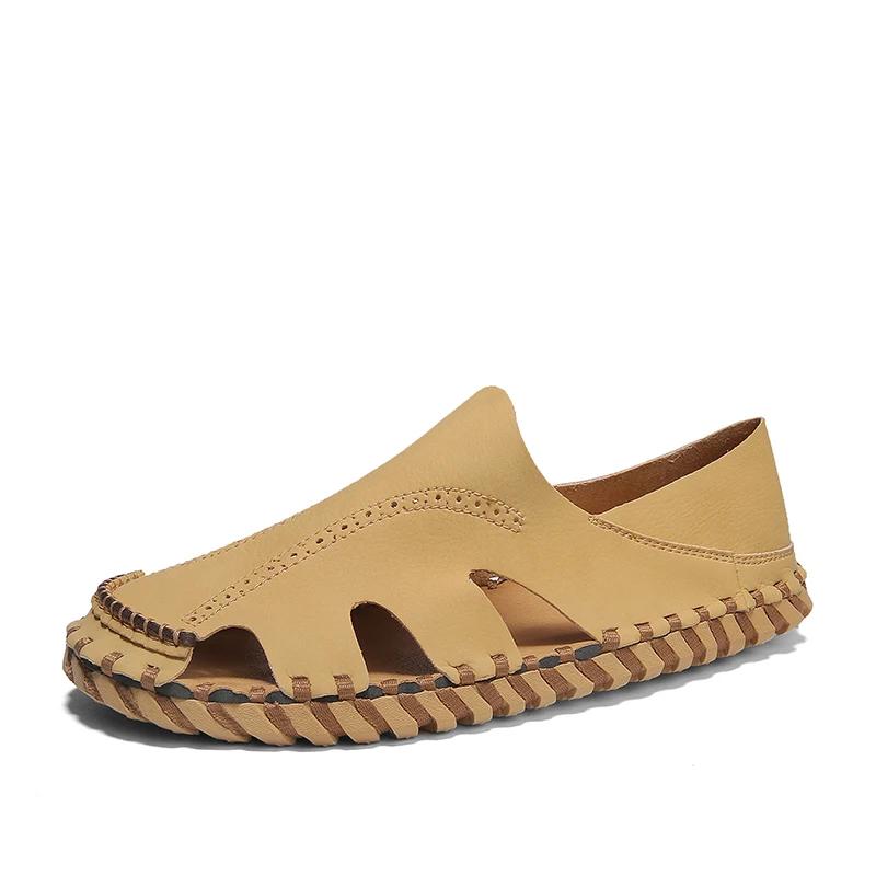 Модные мужские сандалии из натуральной кожи, прочные пляжные туфли ручной работы, мужские летние туфли на плоской подошве, сандалии для отдыха на природе, обувь для мужчин 44 абрикосовый