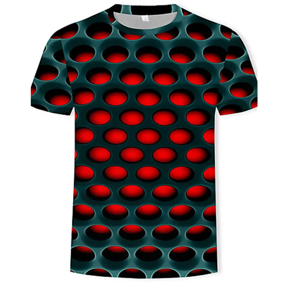 Модные мужские футболки Новинка 3D отверстие с круглым вырезом и принтом облегающая футболка с короткими рукавами в уличном стиле