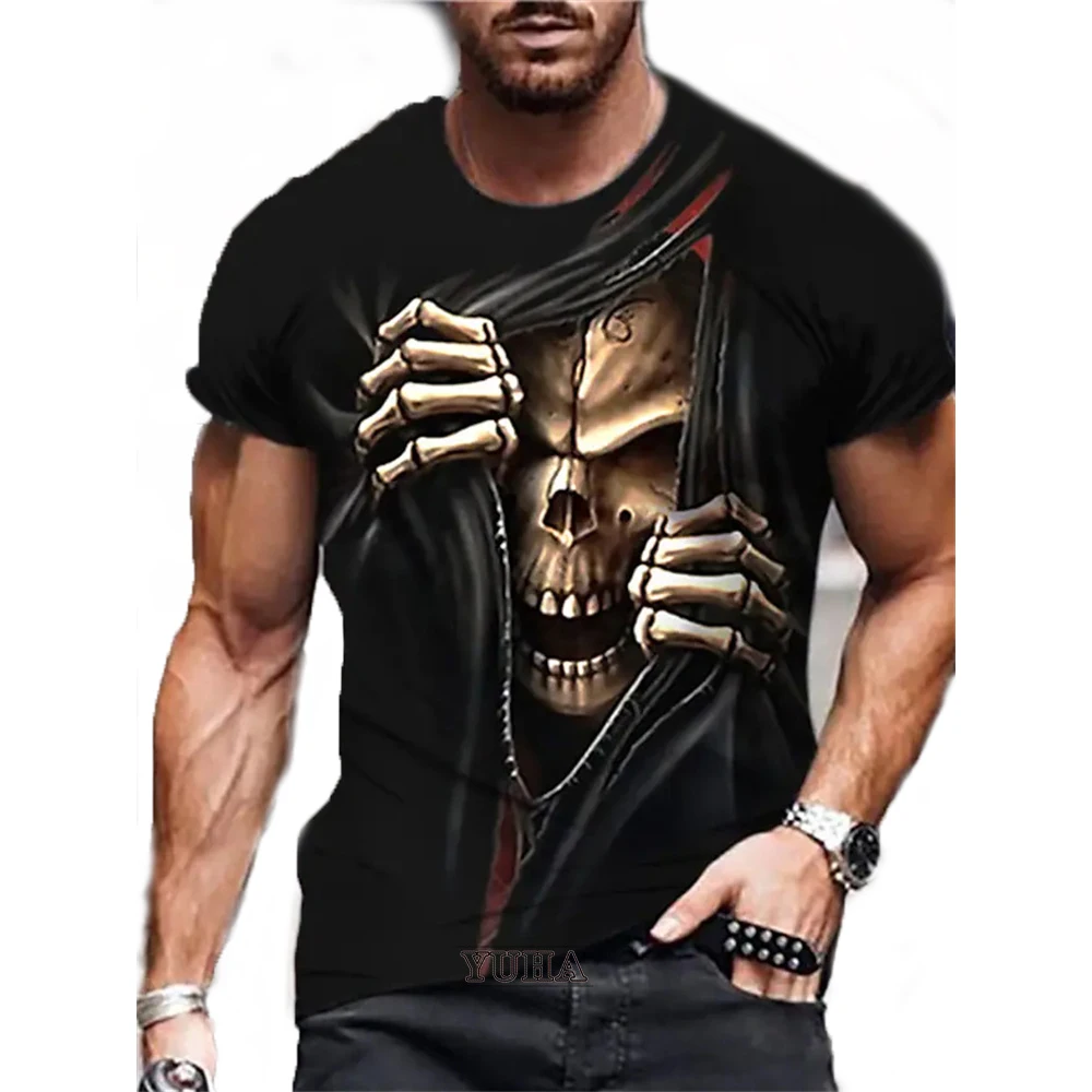 Модные мужские футболки с 3D-принтом черепа, готические винтажные футболки большого размера в стиле Харадзюку с коротким рукавом, уличные футболки в стиле панк с круглым вырезом, трендовые Топы