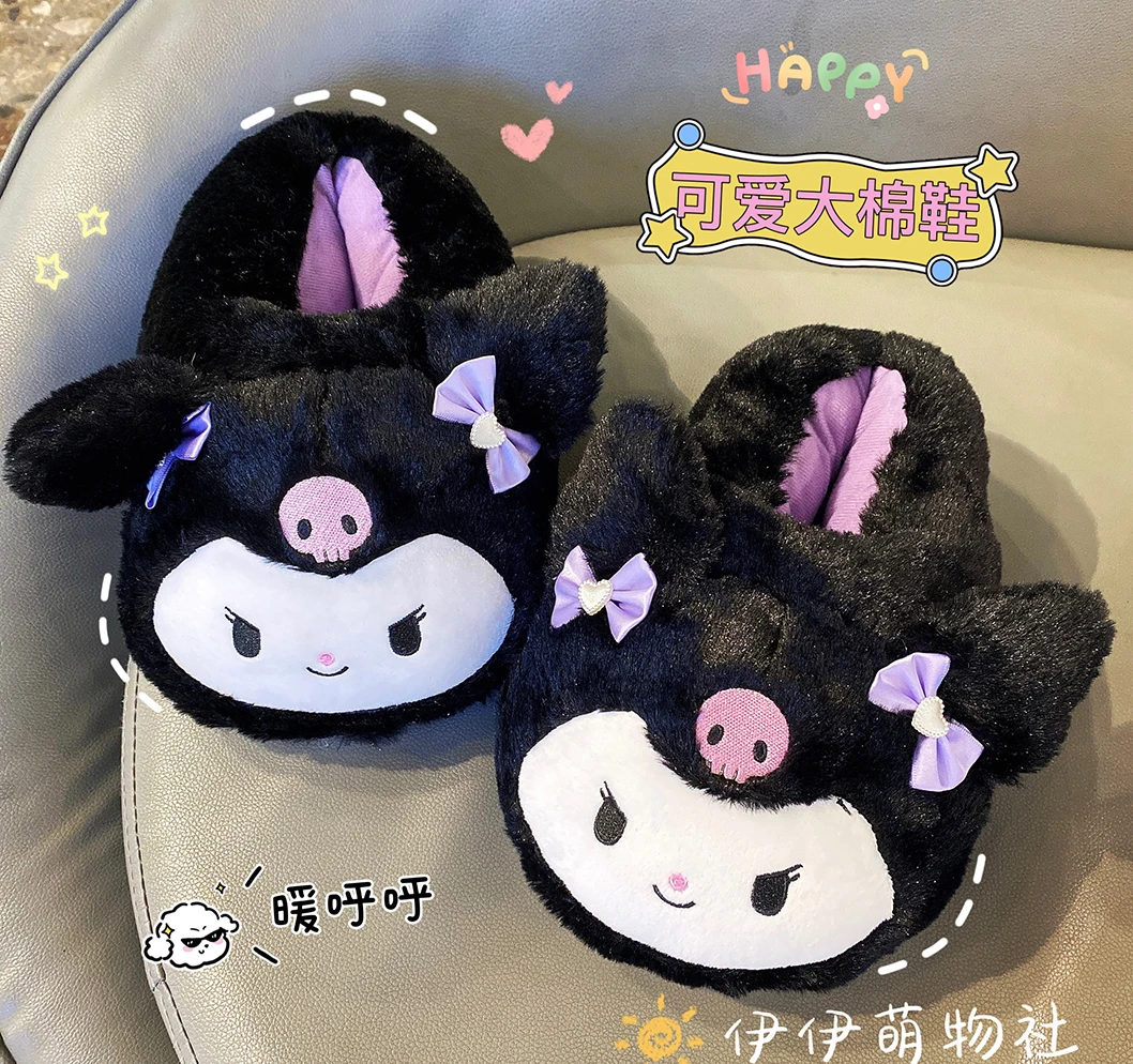 Модные мягкие розовые тапочки для женщин My Melody Kuromi, зимняя мультяшная хлопковая обувь для дома, теплая Студенческая обувь
