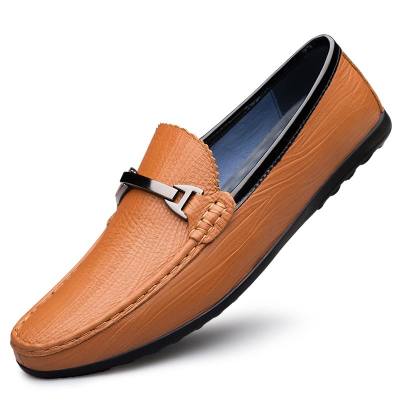 Модные новые деловые кожаные туфли, кожаные мокасины для мужчин, металлическая пряжка, роскошные брендовые мокасины, удобные и легкие туфли для вождения 46 шоколадный