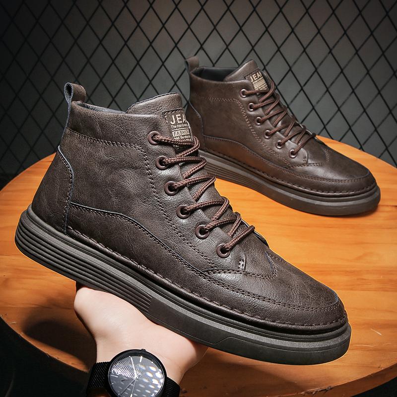 Модные осенние и зимние высокие кожаные туфли для студентов, модные спортивные кожаные туфли для отдыха, нескользящие прогулочные туфли с плоской подошвой 44 коричневый