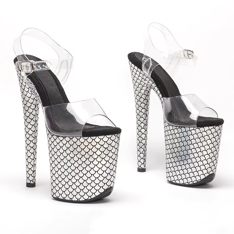 Модные пикантные сандалии на высоком каблуке 20 см/8 дюймов с верхом из ПВХ и платформой 040