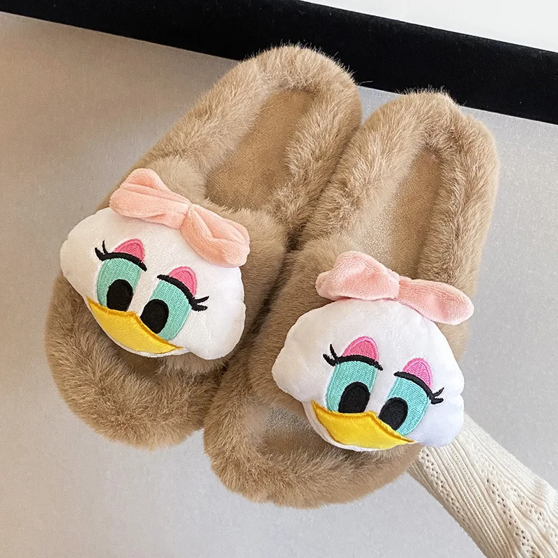 Модные плюшевые шлепанцы Disney для девочек, тапочки на осень и зиму, хлопок, мультяшный Дональд Дак, зимние Тапочки