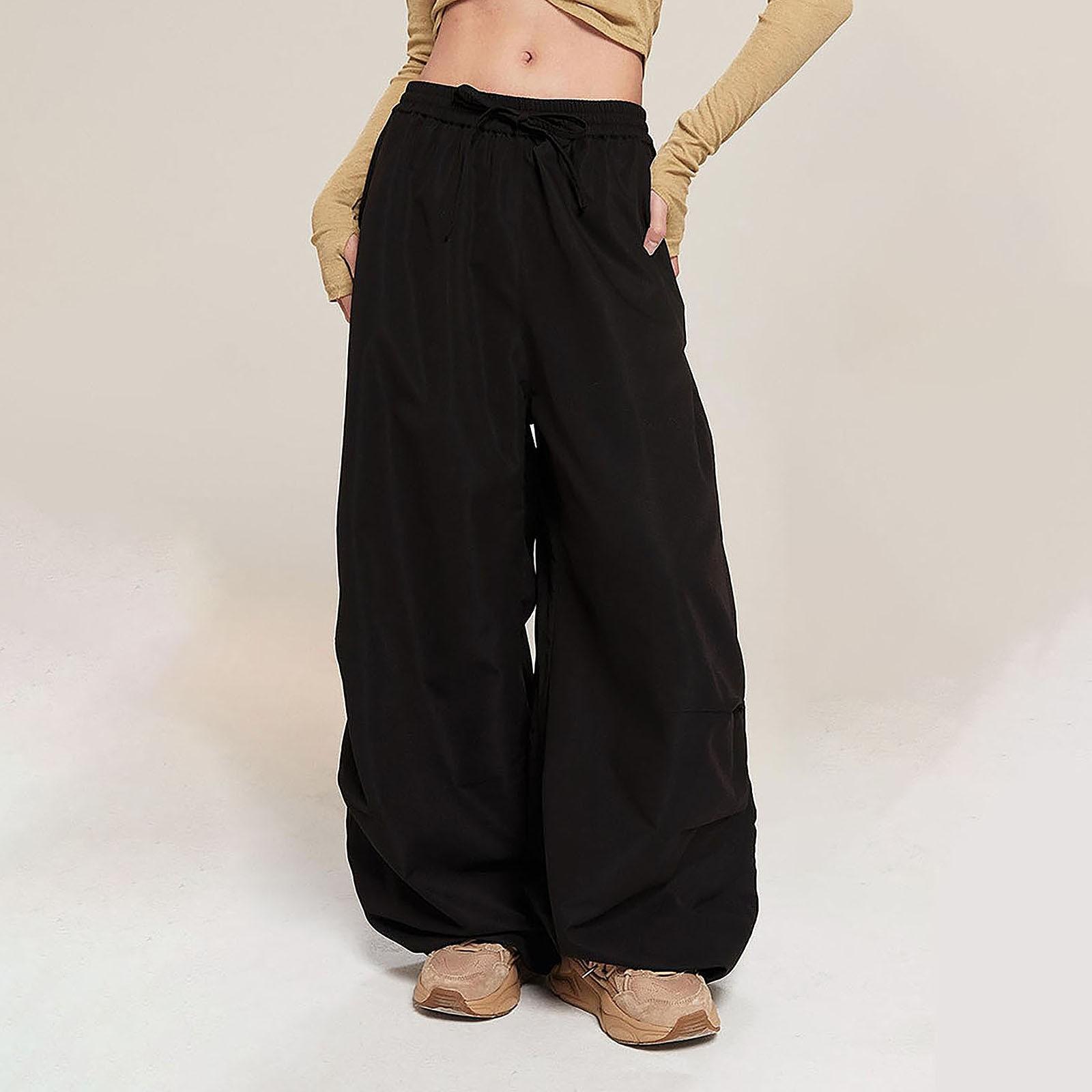 Модные повседневные спортивные брюки с широкими штанинами и эластичным поясом, свободные брюки, штаны-парашюты, брюки-карго десантника L чёрный